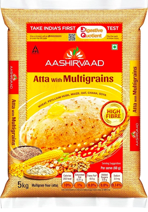 Aashirvaad Atta with Multigrains, 5kg pack, The High Fibre Atta