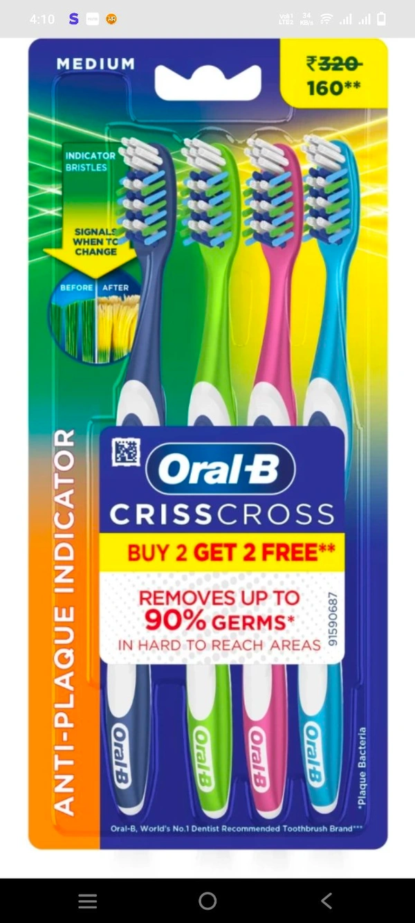 Oral-B Criss Cross Medium Toothbrush (Buy 2 Get 2Free) (4 Toothbrushes)